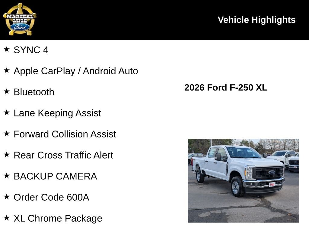 2026 Ford F-250SD Oxford White Price includes: $1500 - Retail Customer Cash. Exp. 04/30/2026
