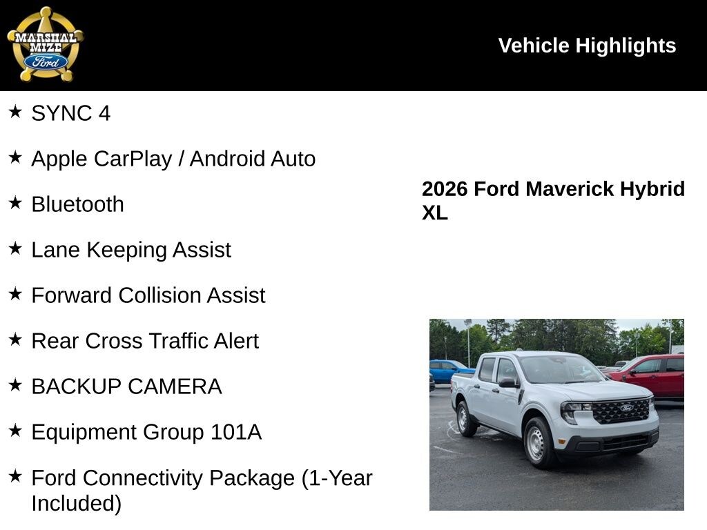 We'll beat your best deal reeee-gardless!!! SYNC 4, Apple CarPlay / Android Auto, Bluetooth, Lane Keeping Assist, Forward Collision Assist, Rear Cross Traffic Alert, BACKUP CAMERA, 2.5L I-4 Hybrid, 2.91 Axle Ratio, Equipment Group 101A, Ford Connectivity Package (1-Year Included), Internet access capable: 5G Modem - Ford Connectivity Package. All NEW vehicle pricing includes FMCC financing or other dealer arranged financing.